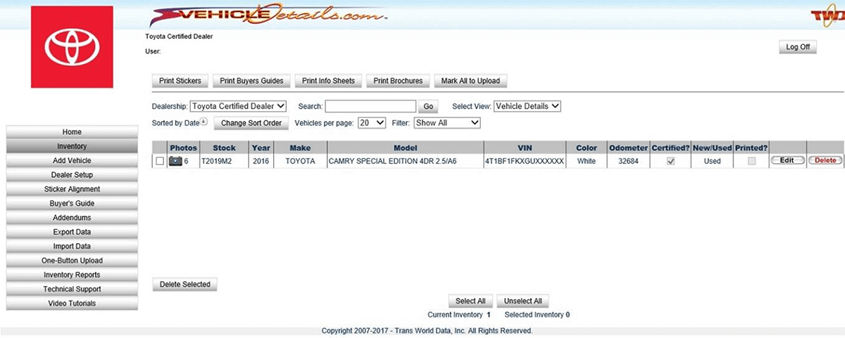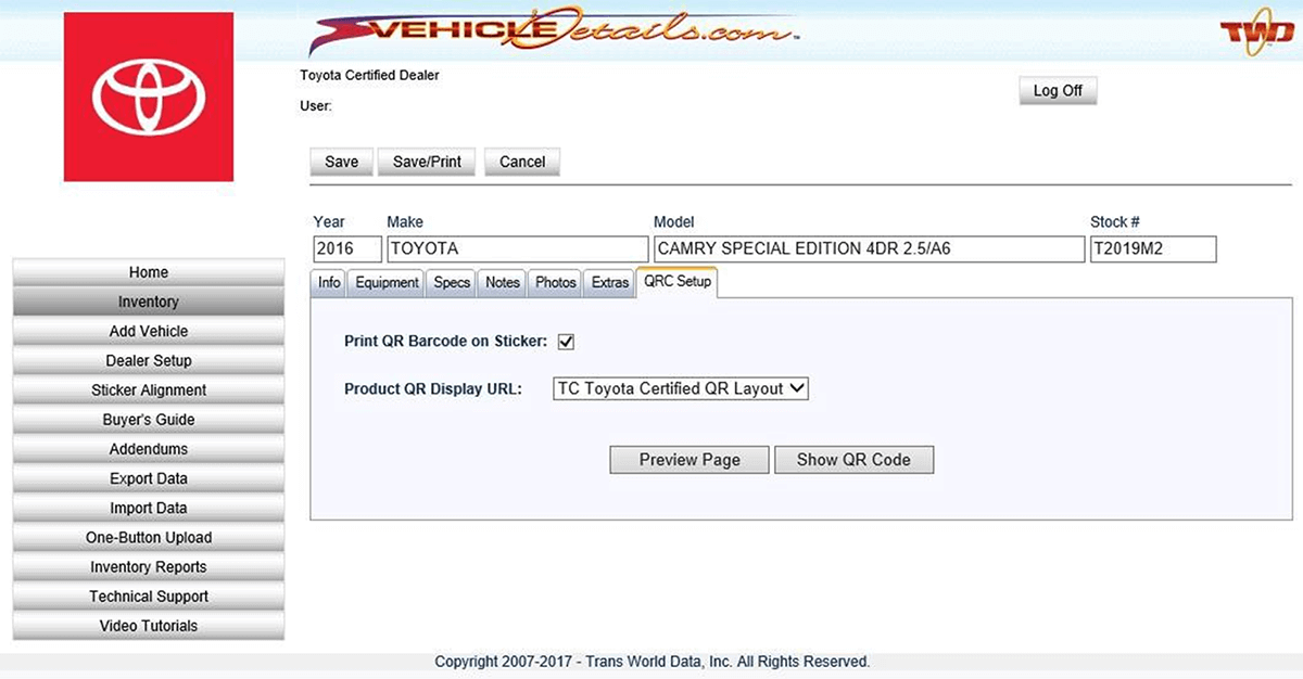 For each vehicle, you can Preview the QR Code Image and the QR Code-Generated Vehicle Listing URL.